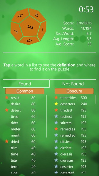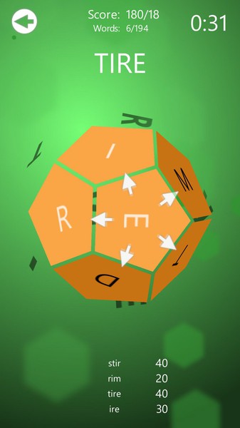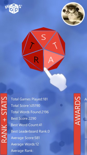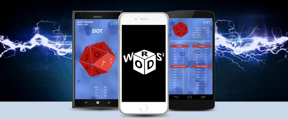 Words Cubed is a 3-Dimensional world-wide multiplayer word search tournament. Quite a mouthful! Players choose a language and compete simultaneously on 3D word puzzles